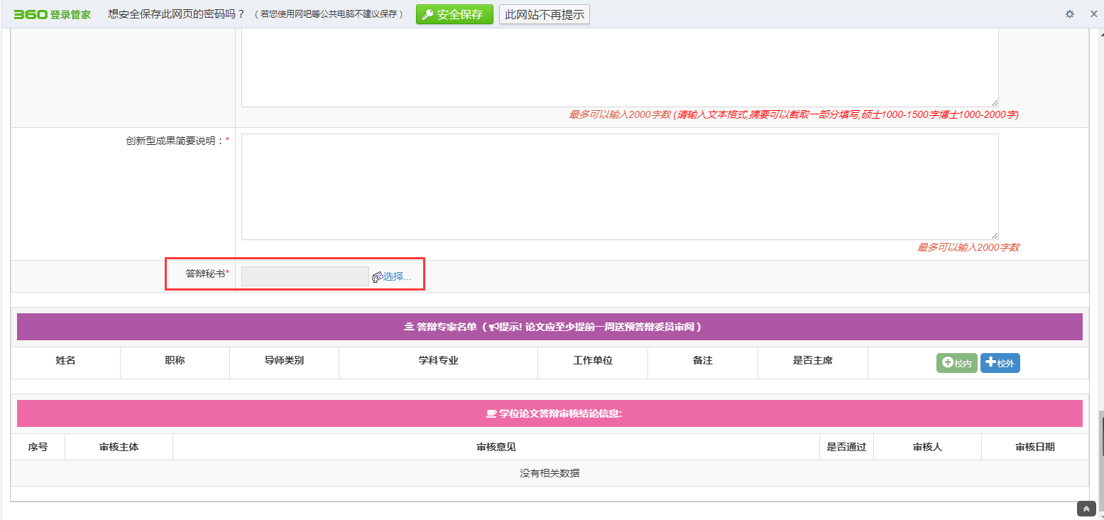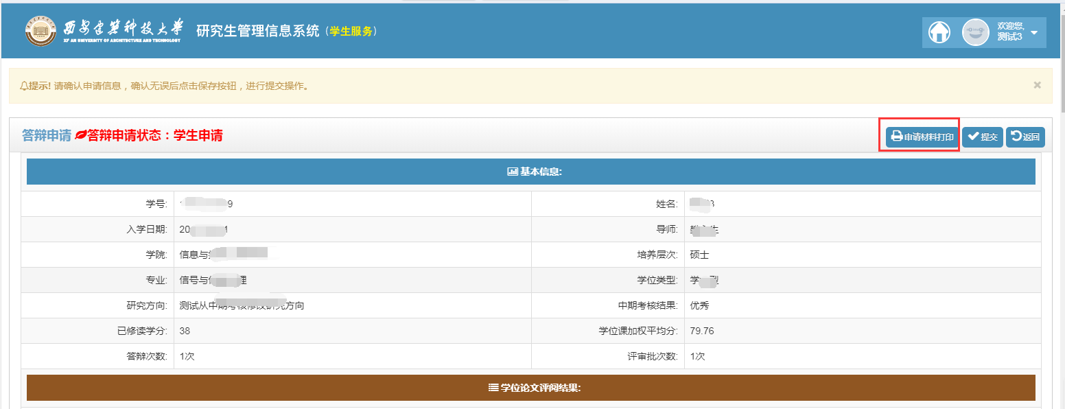 3.提交信息之后,生成答辩材料,完善答辩材料中其他信息,请导师、学院、研究生院相关部门线下审核。